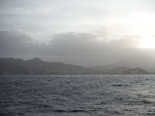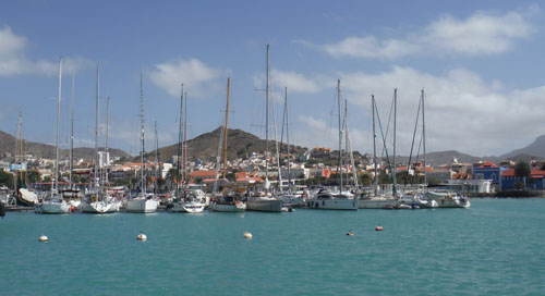 Auringon noustessa merikin näyttää taas mukavammalta. Ajelemme satamaa kohden kutsuen samalla marineroja VHF:llä, vastausta ei kuulu, mutta laitureita lähestyessä, on siellä marinero viittilöimässä meille sopivaa paikkaa. Ajamme laituriin keula tuuleen käännettynä, ojennan köydet marineroille ja saamme limaköyden kiinnitettäväksi veneemme perään. Matkaa Teneriffalta Mindeloon tuli plotterin mukaan 967 mailia ja aikaa kului 7 vuorokautta 19 tuntia 50 minuuttia, ensimmäinen osuus kohti Karibiaa suoritettu (Juha epäilee myöhemmin, että käänsin öisin veneen paluusuuntaan, koska aikaa kului niin paljon).