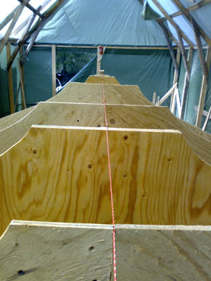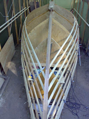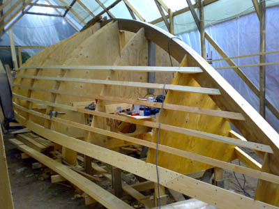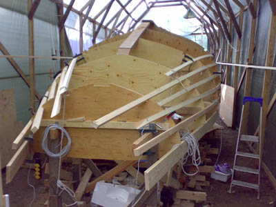 25.8.2007 Nyt olisi kehikko valmiina rungon umpeen laittoon, viisteet höylätty ja emäpuu tehty perään saakka. Mutta kun tuo syksy pukkaa päälle, lämpötilat tipahti ja ilmankosteus näyttää yli 80% Ei taida tulla mitään ennen kevättä. Eli nyt oli tehtävä vaikea päätös: vene menee vesille vasta 2009 keväällä ja käännetään ensi kesänä ympäri. Toisin sanoen ensi kesästä tulee todella kiireinen, täytyisi keväällä saada runko umpeen, kansi paikoilleen ja mastokin liimattua kassaan. Talveksi sitten jää tuo sisusta ja holoitukset sekä kölin valaminen. Nyt sitten tehdään loppu syksy jotain pikku hommia ja rakennetaan vaikka talvan aikana viimeinkin se jolla... onko jollain hyviä piirrustuksia? Taitaa olla parasta myös Unique pitää vielä ensi kesän purjehduskuntoisena ja purkaa vasta 2008 syksyllä... |