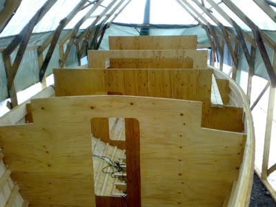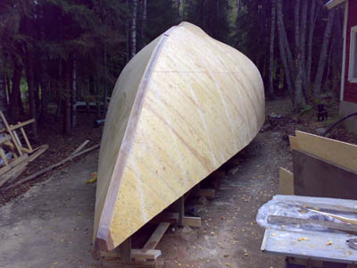 21.5.2008 Ensimmäinen kerros alkaa olla valmiina ja viimeinkin alkaa näkemään tuon veneen todelliset ja kauniit muodot. |