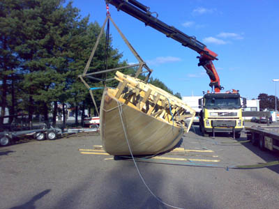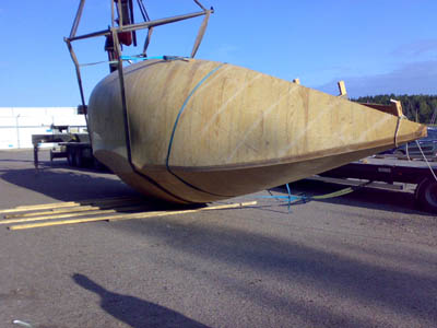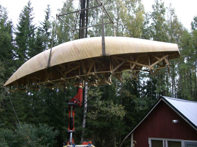 13.9.2008 Viimeinkin runko valmiina ja vapaana katoksesta. Kuidutettuna ja näin myös sään kestävänä. Kuljetusta odottamassa. Yksi vaihe on takana ja ehkä noin puolessa välissä koko projektissa... |