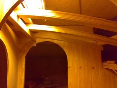 ![]() Ruffin seinät (okumevaneria) saarni listoineen mallattuna paikoilleen, ei muuta kuin ikkanan reikiä tekemään. Kaikki sisäpinnat rungossa käsitellään epoxilla, jottei kosteus pääse runkoon sitä kautta |