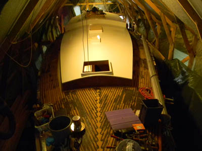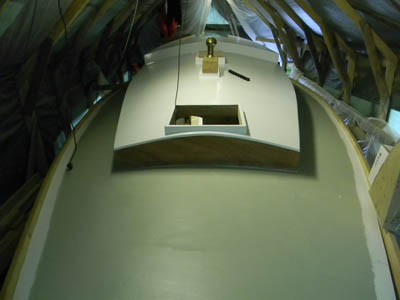 lakattu. Katto sai ensin epoxi-kitin ja sen päälle kolmekerrosta praimeria ja lopuksi kaikkiaan viisi kerrosta Hemppa Thane kaksikomponentti maalia, kun piti tuo väri vielä vaihtaa puhtaan valkoisesta sateen valkoiseen. Ruffin seinät saivat kuitu ja epoxi käsittelyn päälle viisi kerrosta Hemppelin Diamont kaksikomponentti lakkaa ja kiilto on kova... |