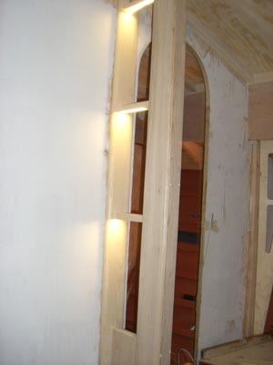 ![]() Maston tukitolppa led-valoineen tulee olemaan tunnelman luoja, kunhan vielä pienet hyllyt saa tehtyä aina valon alle. |