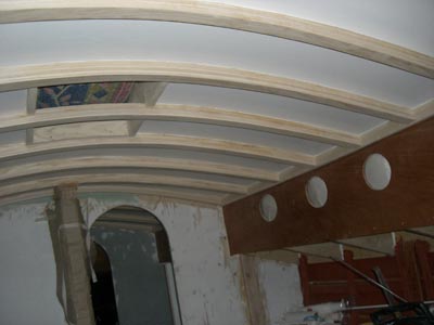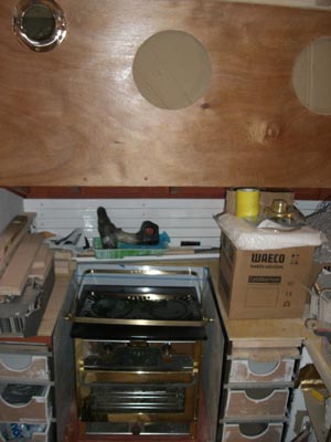 sallineet. Kaapistojen rungot on myös valmiina, aina maalipintaa myöten. Ovet ja hyllynreunojen lakkaukset vielä puuttuu. Myös kaikki katot on maalattu lopulliseen pintaan ja ruffin seinätkin ovat saaneet ensimmäisen lakka kerroksensa. Kaikki nuo maalaukset ja lakkaukset sekä viimeiset hionnat ovat olleet Maijun hommia, minut on ajettu pois tieltä muihin hommiin. ![]() |