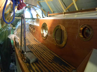 Vaikka sivu kannet on vielä hiomatta niin alkaahan tuo valmiilta näyttämään, kun on ikkunat paikoillaan sekä katolla tartuntakahvat. Rimotus tosin jatkuu edelleen peräkannella ja sen jälkeen olisi vielä vuorossa turkkilevyt sisältä ja tietysti kansi-luukkujen rimotus keulasta sekä peräkannelta. Rimaa kuluu yhteensä liki 800 metriä Sisältä on myös salonki ja pentteri jo lakattu ja keulahytistä sekä wc:stä puuttuu enää pari kerrosta lakkaa. Kun tuo peräkansi on valmis päästään tekemään sisälle ovia ja nostamaan kone paikoilleen. |