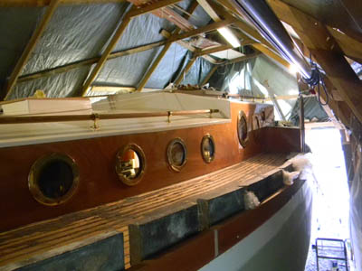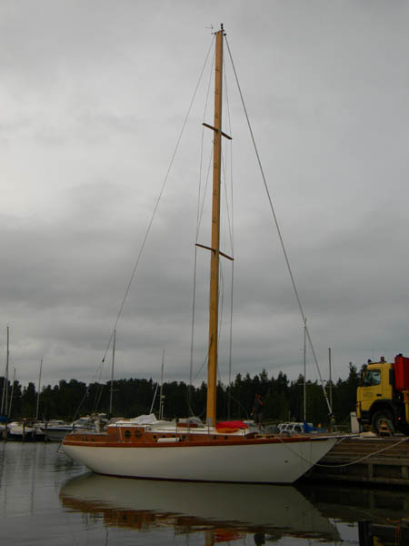 Viimeinkin teltta lähti ja vene nostettiin kölinsä päälle... ![]() Viimeinkin pääsi itsekin ihailemaan viiden vuoden työn tulosta, kun saatiin teltta pois päältä ja vene kölinsä päälle. Tähän saakka kun sitä oli katsellut pimeässä teltassa metrin päästä, niin kokonaisuus oli vain arvailujen varassa. Sieltähän tuli esiin sulavalinjainen vene... Ja kaiken kukkuraksi se seisoi kuin tatti pelkän kölinsä varassa, ilman yhtäkään tukea. Vielä vaatii tuon loppurutistuksen jotta saadaan vesille, mutta kyllä se muutaman viikon kuluttua ui... Loppurutistus kesää kohti... ![]() Sulaa lyijyä kattilasta muotin pohjalle... Paljon on vielä tekemistä ennen vesille pääsyä. Köli on viimeinkin valettu ja viimeistelyä vaille. Rungon maalaus ja peräsimen teko on kovimmat hommat jäljellä sekä tietysti moottorista koesavujen saanti... Vastauksia uteliaille ja vähän muillekin... Venetyypin valinta oli muutaman vuoden työn tulos, paljon epäröintiä ja tutkiskelua. Kaipasin nopeaa venettä ja olinkin jo kallistumassa katamaraaniin tai jopa trimaraaniin. Pääsin pienelle koepurjehdukselle Lagoonin katilla ja kulku sillä oli kuin olisi junalla mennyt. Ei kallistellut ja noin 6 metrin tuulella tasaista menoa. Puuttui se jokin purjehduksen tuntu johon oli oppinut vanhalla kunnon raaserilla. Lisäksi löysin riittävän monta kuvaa missä katti oli mennyt nurin (tosin monta kuvaa kisoista). Harkinta palasi jälleen yksirunkoisiin, koska koin sen turvallisemmaksi vaihtoehdoksi, painolastikölin vuoksi kun vene pyrkii aina nousemaan pystyyn... En halunnut mitään nykyaikaista leveäperäistä surffivenettä, vaan klassisen mallisen purjeveneen. Aikani meni selatessa nettiä ja etsiessä veneitä, sekä kunnostettavia runkoja että piirustuksia. Melkein jo ostin Vaasasta betoniveneen, joka oli tarkoitus laittaa kuntoon. Se oli melkoisen lähellä noita muotoja ja koepurjehduksella osoittautui kohtuullisen nopeaksi ja hyvin purjehtivaksi veneeksi. Runko oli vain halki kölin takaa ja alkoi vuotaa noston jälkeen kuin seula, eli vedetty kiville ihan kunnolla. Aloin piirtää itse noin 12 metristä venettä ja melkein loppuun sainkin piirrettyä, mutta silloin löysin nuo Hartleyn mallit ja ihastuin noihin rungon muotoihin. Piirustukset saatuani huomasin, että omat itse piirretyt kuvat olivat lähes samanlaiset sekä sivu profiililtaan että kaariltaan. Itsepiirretyissä oli leveyttä 15 cm enemmän, muutoin samat muodot. Vanha Unique oli tehty ristiinlaminoimalla mahonkiviilusta ja runko oli todella luja ja jäykkä. Lisäksi menelmä sopi oikein hyvin itserakentajalle. Ja puu on materiaalina se mikä taipuu minun käsissäni... Päätin varmuuden vuoksi ottaa Hartleyn piirustukset pohjaksi ja tehdä rungon niiden mukaan. Kansi ja sisusta onkin sitten täysin omaa suunnittelua. Kaikki on päässä ja näkymä valmiista veneestä on olemasa vain tässä tyhmässä päässä, koitahan siitä sitten tehdä valmista... kohtuu hyvin siinä on onnistuttu. lakkapintojen sävykin oli päässä ja siinähän se urakka olikin että se löytyi... monta kokeilua petsien ja lakkojen kanssa tehtiin ja lopulta väri on sekoitettu itse eri mahonkipetsien sävyistä ja kerroksilla saatu värin syvyys esille. Alumiini- vai puumasto Kauan tuotakin arvottiin... Alkujaan halusin puumaston ja sellaisesta jo tarjouksetkin pyysin, mutta sitten erehdyin laskemaan maston painon ja se kun meni lähemmäksi 400 kg, niin ei käy... Siirryttiin alumiiniin kevyemmän rakenteen vuoksi, painoa kun oli vain 150kg. Nykyisten alumiinimastojen profiilit on kasvaneet ja ainevahvuus ohentunut ja hieman alkoi mietityttämään metallin väsyminen ja profiilin kestäminen sekä tietysti mukana myös tuo ulkonäkö... Eikö puumastosta saa riittävän kevyttä ja silti lujaa??? Tuota tuli mietittyä jonkin aikaa ja viikko laskettua materiaalin vahvuuksia ja painoja sekä profiilin mittoja, jäykkyyksiä yms. Mielestäni hyvin tehty puumasto, liimapuusta, nykyisillä avaruusajan liimoilla ja puun ylivoimaisilla ominaisuuksilla on lujempi ja kestävämpi kuin alumiinimasto. Aikani laskettua ja muutamia unettomia öitä vietettyäni asian vuoksi sain laskut valmiiksi ja mielestäni jäykkyys oli riittävä ja painokin saatiin tippumaan 220kg. Eli tarjouksia uusilla piirustuksilla... ja Sorvipojat vei voiton. Masto saapui luvatusti ja nyt kun se on purettu paketista ja kyllästetty sekä vanha alumiinimasto vieressä, niin kyllä tuo puumasto on se oikea. Sekä ulkonäön että jäykkyyden puolesta! |